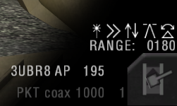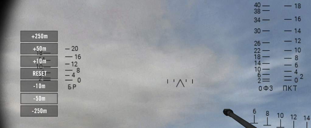 - Although the desired mode of operation is for the weapon to be set automatically, the gunner has also the ability to dial manually. This will however not correct for aiming mismatches (see below). If the distance to the target is greater than physically achievable by the selected weapon, the HUD will display a red lettering of the current range setting or ^ ^ ^ ^ as the error indication.