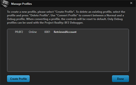 You have one PR Account that is unique. However, you can create multiple profiles under this PR Account. Each profile has a unique in-game name as well as separate settings and controls saved on your computer. You can retrieve previously created profiles as well. Older profiles created after PR:BF2 v1.2 and before v1.6 can be retrieved as well by providing the profile name and password.