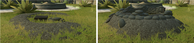 Tempatkan struktur/aset di tempat terbuka untuk mencegah efek-efek dan penempatan yang tidak diinginkan. Kerangka struktur akan muncul ketika lokasi penempatannya tidak begitu jauh dari posisi Anda.