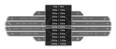 - Jarak musuh lebih jauh dari 50m di peta 1x1 km atau 125m di peta 2x2km dan 4x4km.